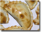 pino, una rebanada de huevo, una aceituna y una pasa. Doble y cierre humedeciendo el borde con un poco