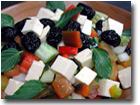 Lave bien las verduras y pélelas. Pique los tomates, pepino y quesillo en cubos y sazone con el aceite, jugo de limón y el resto de los aliños. |